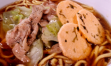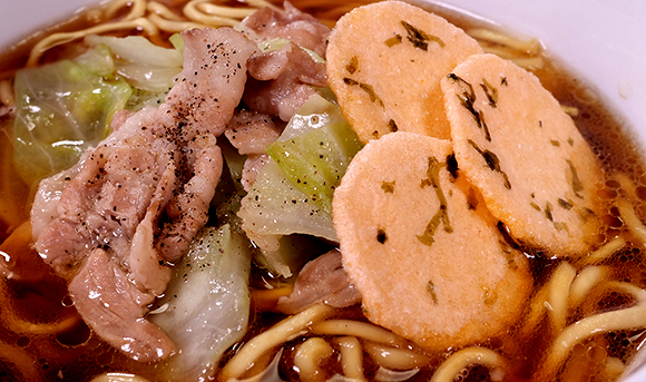 - 3の麺と具を盛り付け、トッピングをのせて完成です。