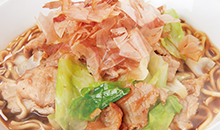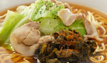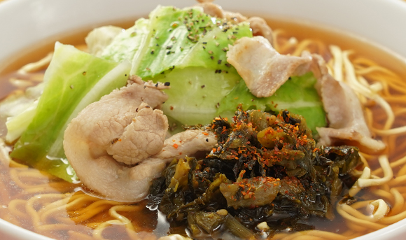 - 3の麺と具を盛り付け、トッピングをかけて完成です。