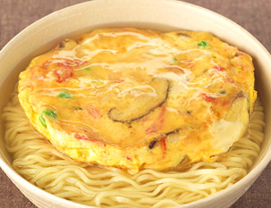 全体が半熟状になったら30秒ほど焼き固め、裏返してさっと焼き、もう一度裏返して取り出す。 盛りつけて、 STEP.2で作ったあんをかけて、出来上がり。