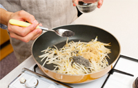 強火のままフライパンにAを混ぜ入れ、味付けをする。