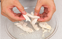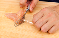 フォークでささみの筋を取り除き、