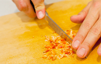 むきエビの背わたを取り除き、粗く刻む。桜エビを粗いみじん切りにする。A、むきエビ、干し桜エビをボウルに入れ、軽く混ぜ合わせ、10等分にする。